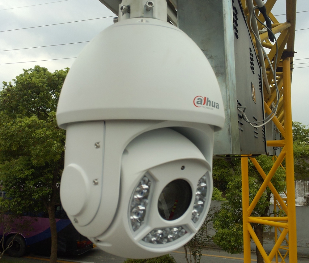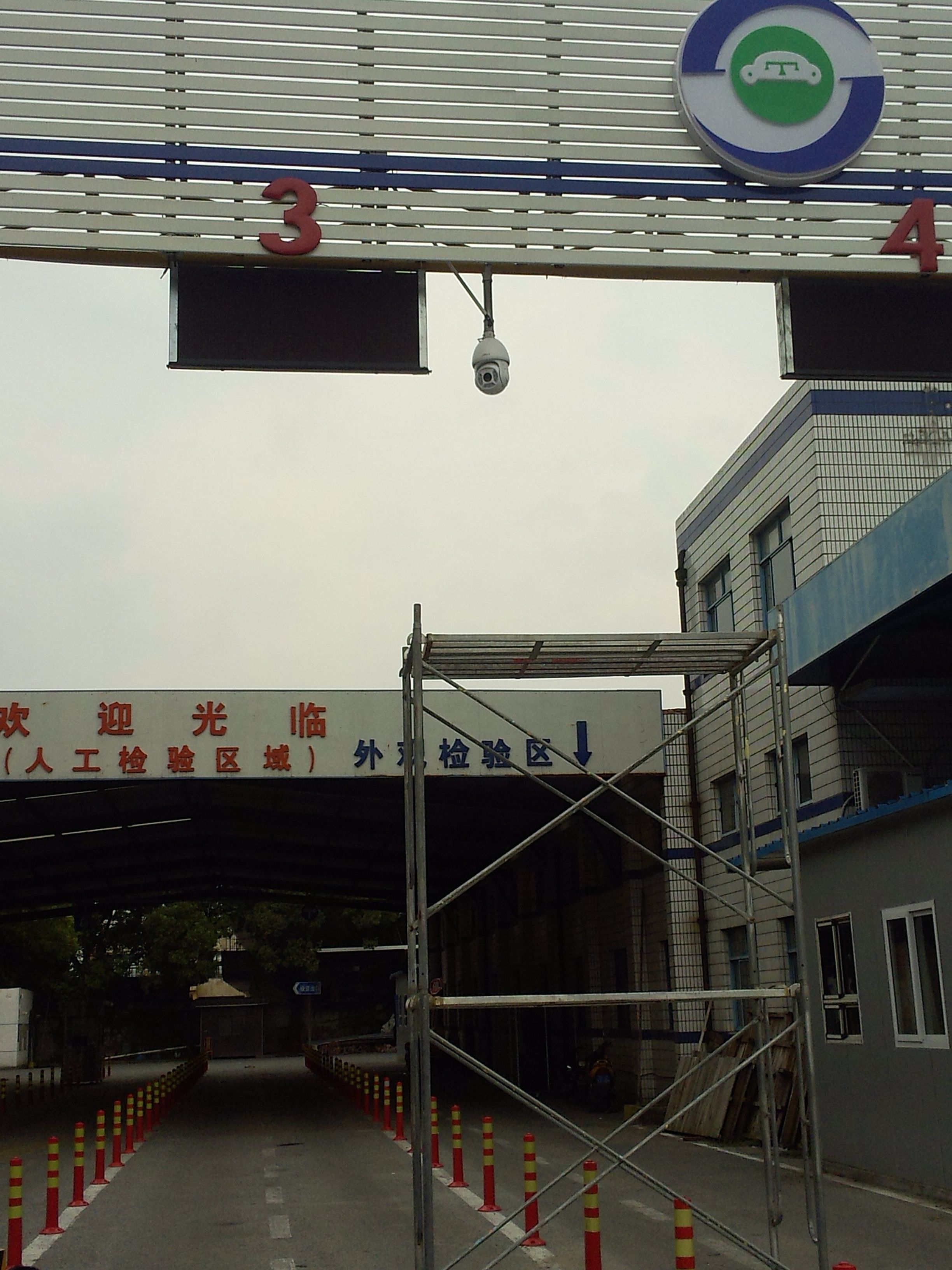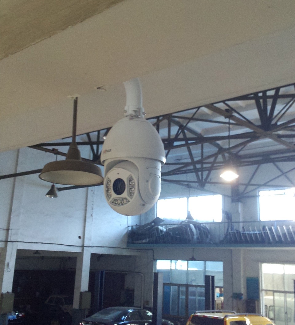 上海市第二十机动车安全检测站,青浦区青安路895号,大华130万高清网络球机监控安装,360度旋转球机了解整个厂区情况,通过23倍焦距放大,100米内地上的一元硬币清晰可见,所有检测线上的车牌都在监视范围内。