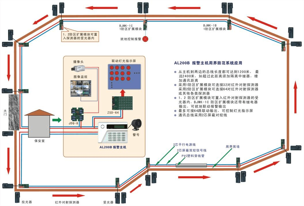 周界红外报警系统是新型现代化安全管理系统,它集自动识别技术、光学和现代安全管理措施为一体,它涉及电子、机械、光学、计算机技术、通讯技术等诸多新技术。它是实现安全防范管理的有效措施。一般应用于银行、、商场、写字楼、学校、博物馆、智能化小区、企业仓库等大小型周边区域报警防范。